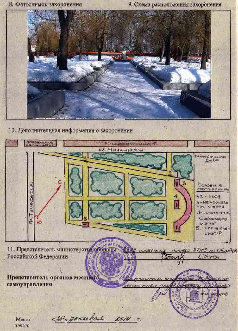 Увековечен в печатной Книге Памяти Тамбовской области том 10 (указана дата гибели 06.12.1942).