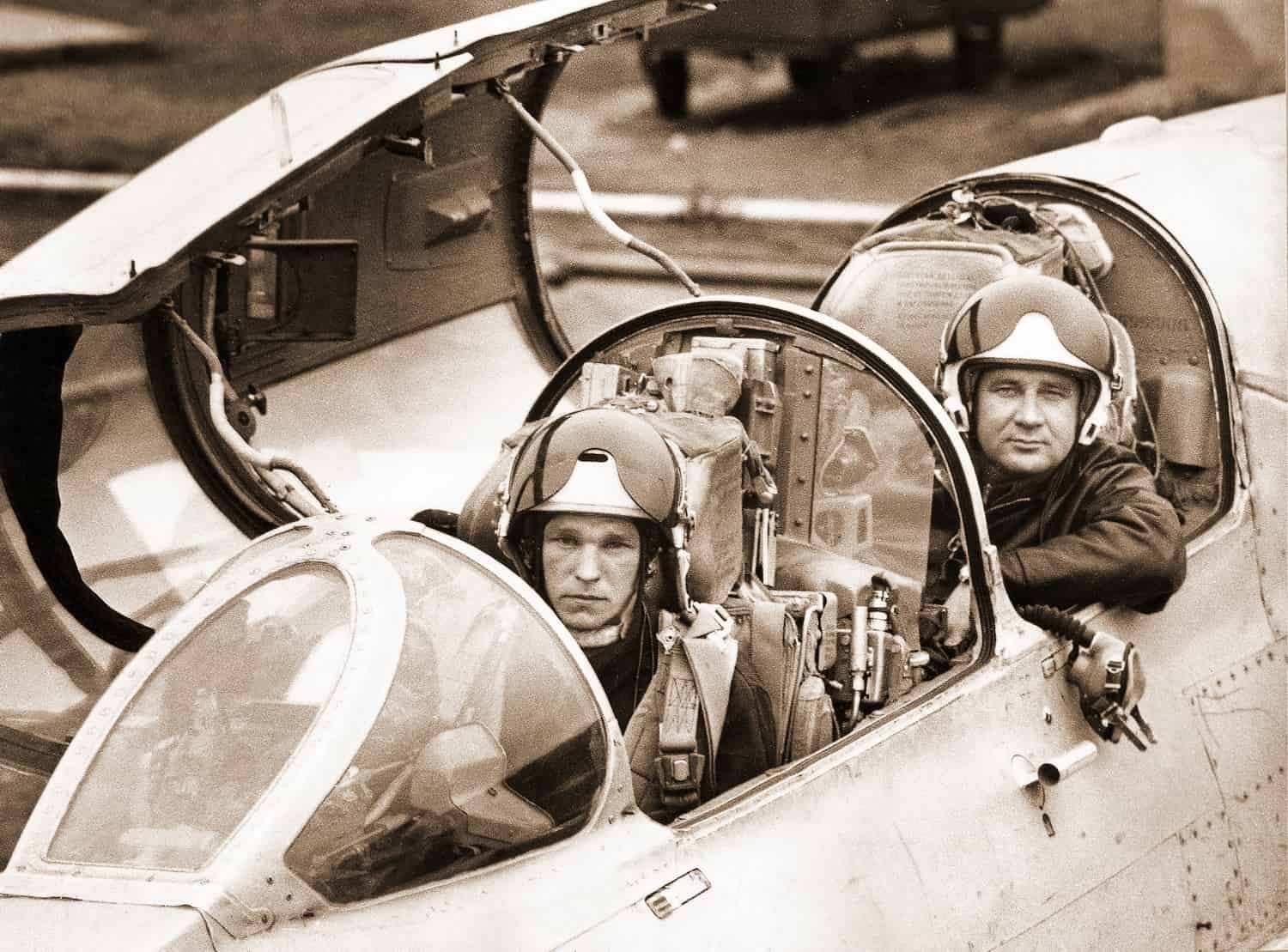 В инструкторской кабине командир полка подполковник Иванов Н.А.
