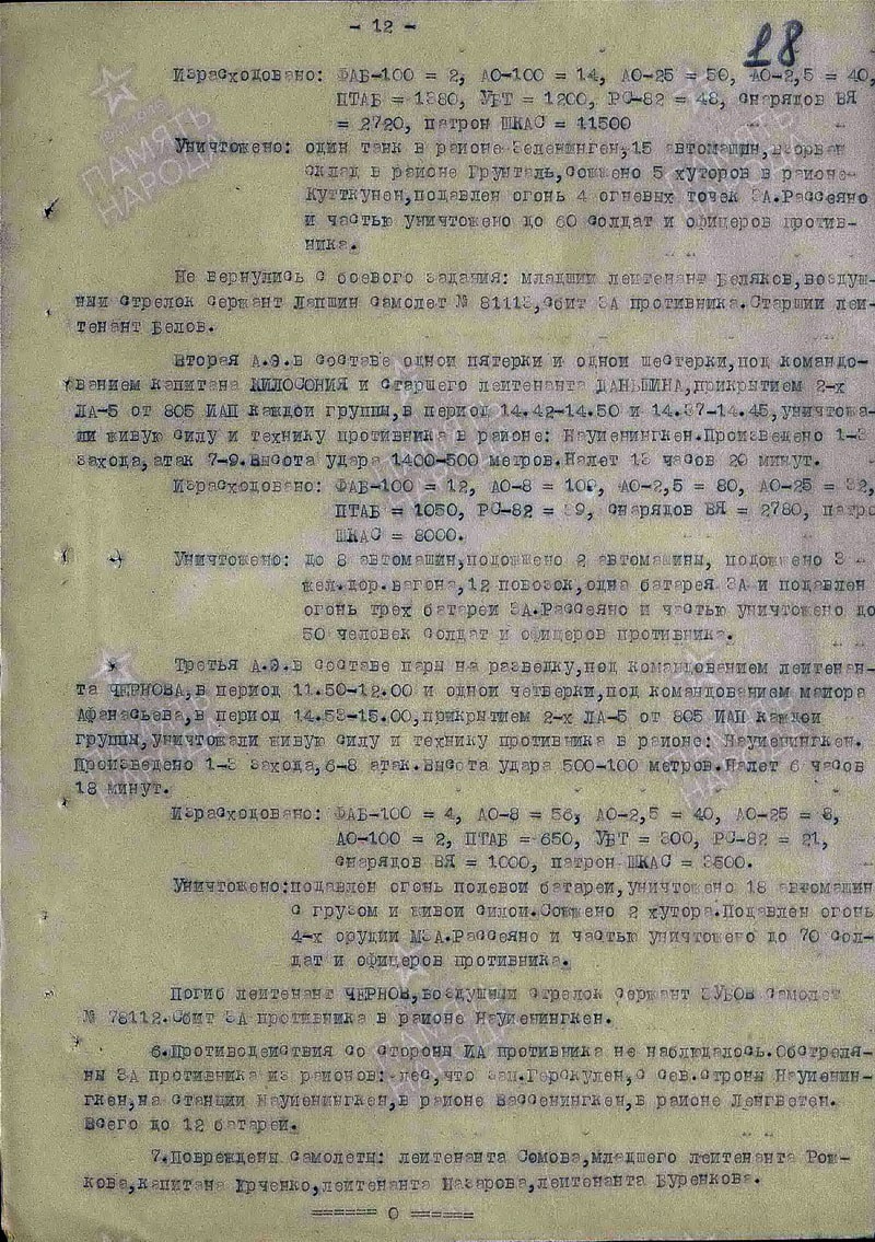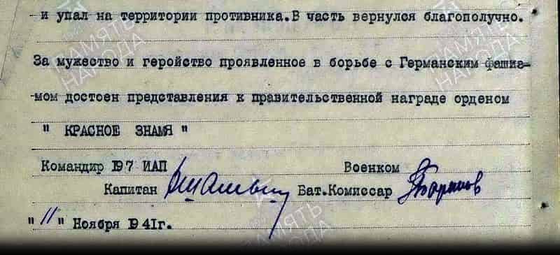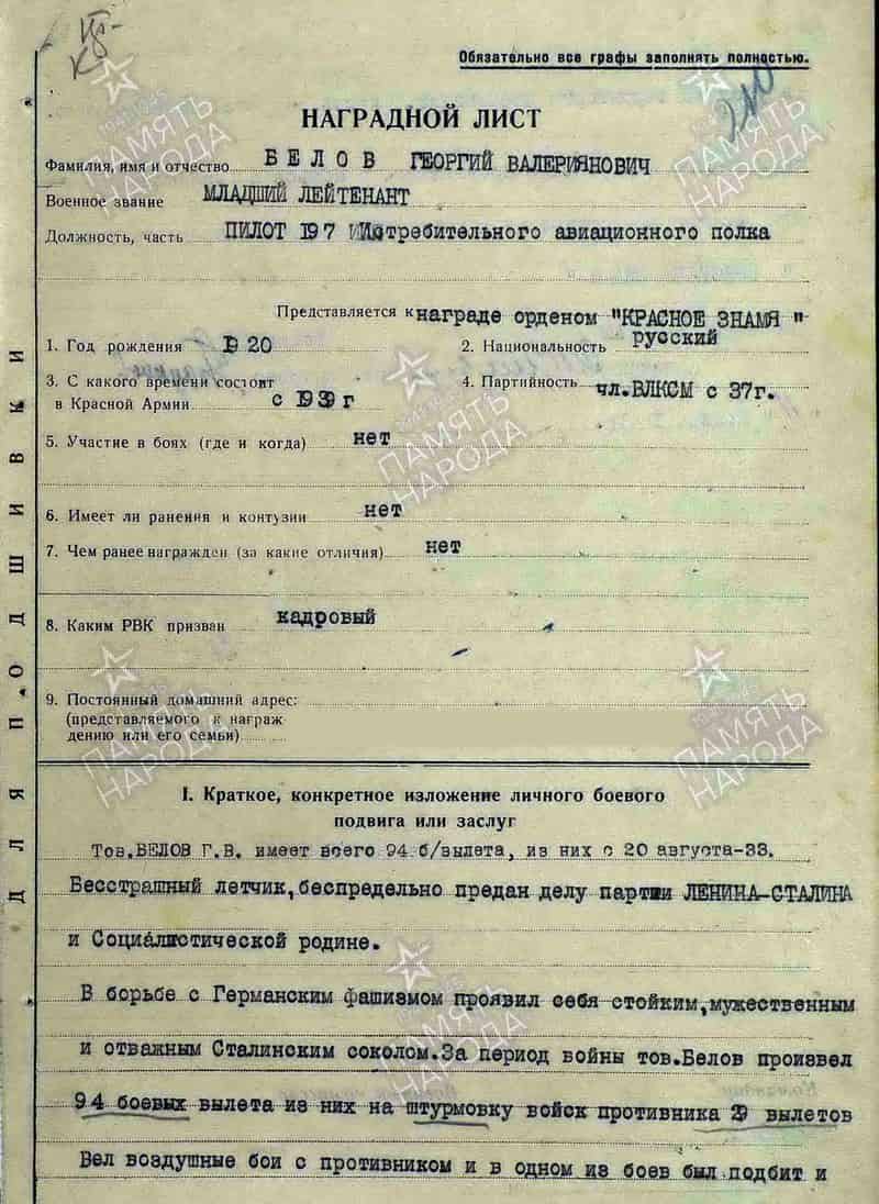 11.11.1941 пилот 197 иап младший лейтенант Белов Г.В. представлен к награде.