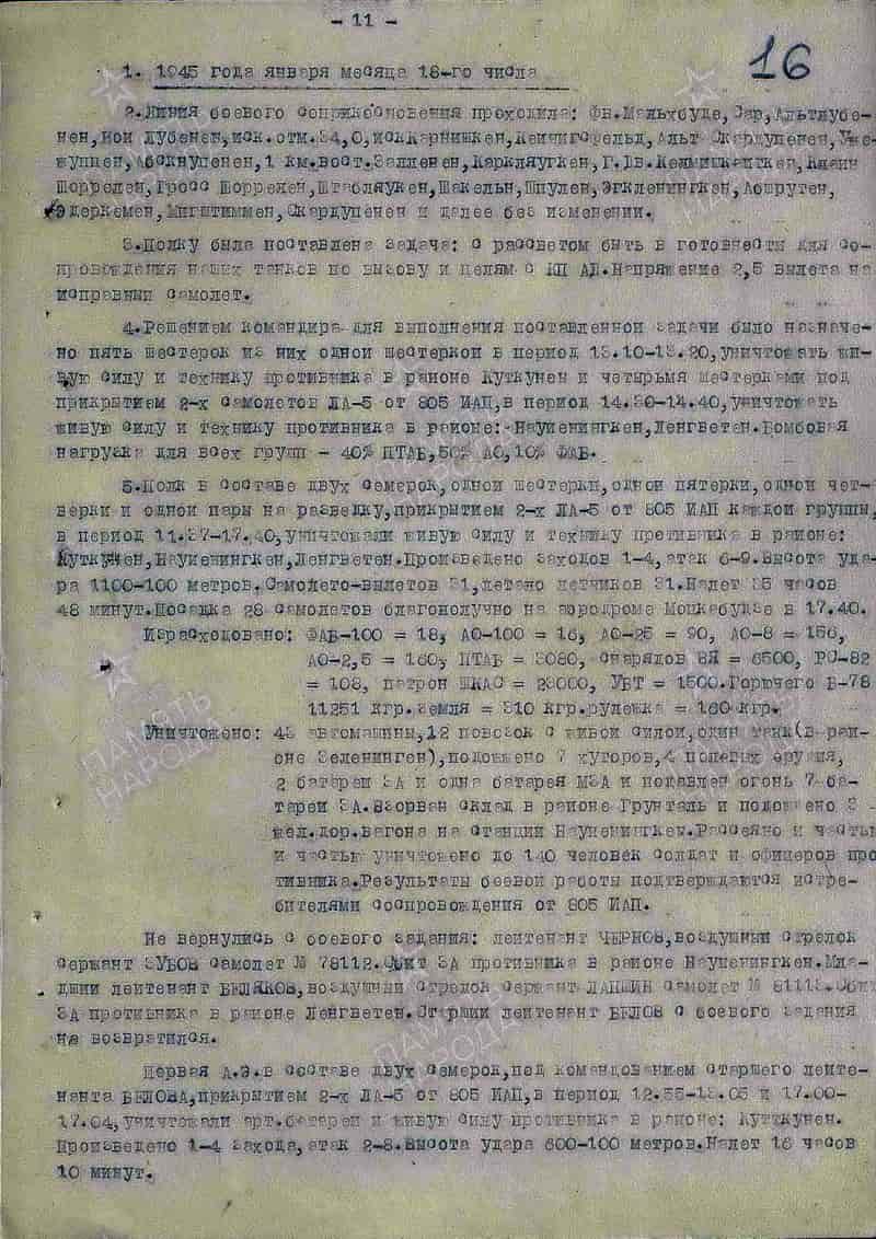 18 января 1945 года заместитель командира эскадрильи 64 шап гвардии старший лейтенант Белов Георгий Валерьянович погиб, сбит зенитной артиллерией противника.