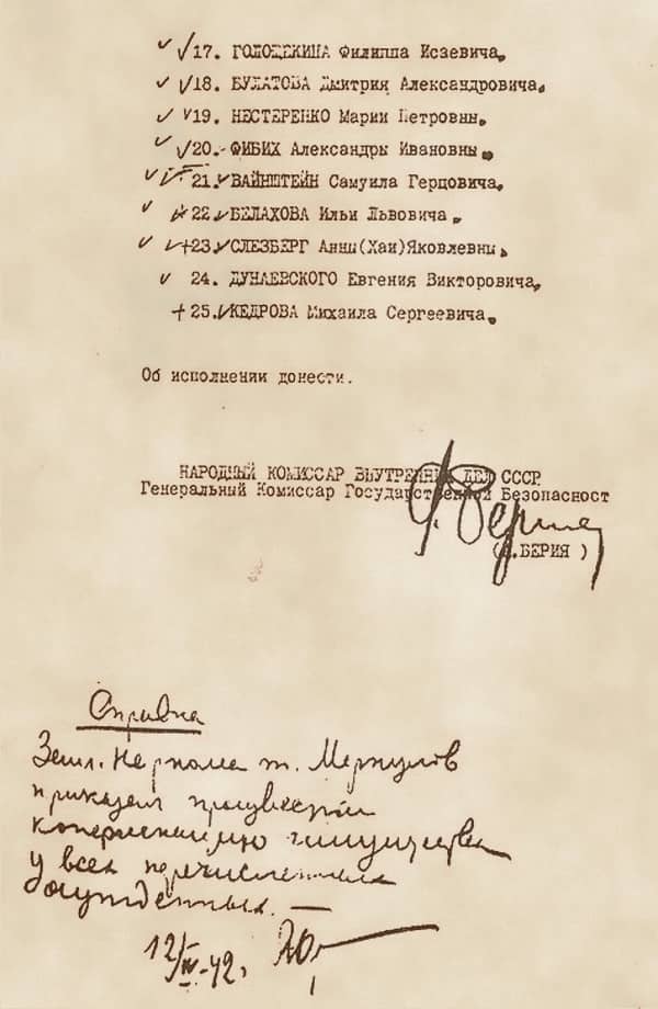 "...Летом сорок первого арестовали 20 человек. Среди них: заместитель наркома обороны СССР генерал армии К.А. Мерецков; нарком вооружения Б.Л. Ванников; помощник начальника Генерального штаба дважды Герой Советского Союза генерал-лейтенант авиации Я.В. Смушкевич; начальник управления ПВО Герой Советского Союза генерал-полковник Г.М. Штерн; заместитель наркома обороны, командующий войсками Прибалтийского Особого военного округа генерал-полковник А.Д. Локтионов; начальник Военно-воздушной академии генерал-лейтенант Ф.К. Арженухин; заместитель начальника управления ВВС И.Ф. Сакриер; Герой Советского Союза генерал-майор авиации И.И. Проскуров и другие. Арестована была и жена П.В. Рычагова, известная лётчица, заместитель командира полка майор М.П. Нестеренко - прямо на лётном поле..."