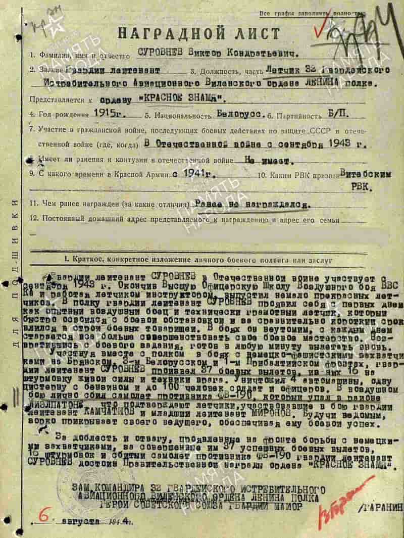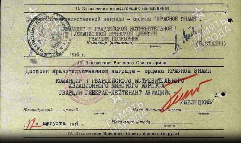06.08.1944 представлен к награде: