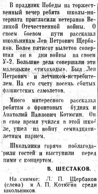 11 января 1946 года старший лейтенант Щербаков Лев Петрович уволен в запас.