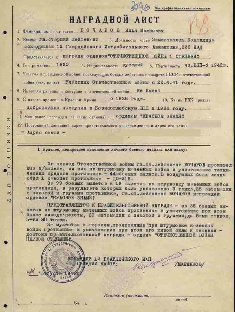26 июля 1958 года (по другим данным 18.06.1956) подполковник Бочаров Илья Иванович уволен в запас.