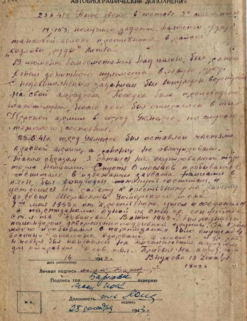 22 июня 1946 года младший лейтенант Барков Александр Васильевич уволен в запас.