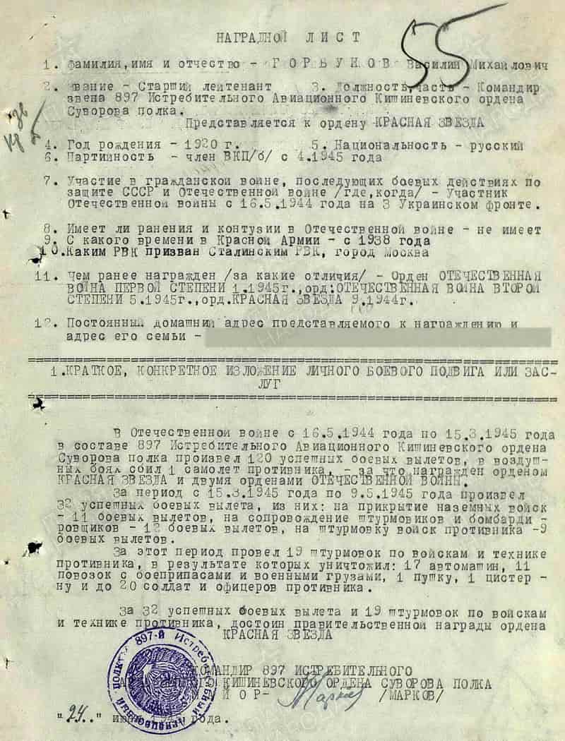 По данным наградных листов 897 иап: