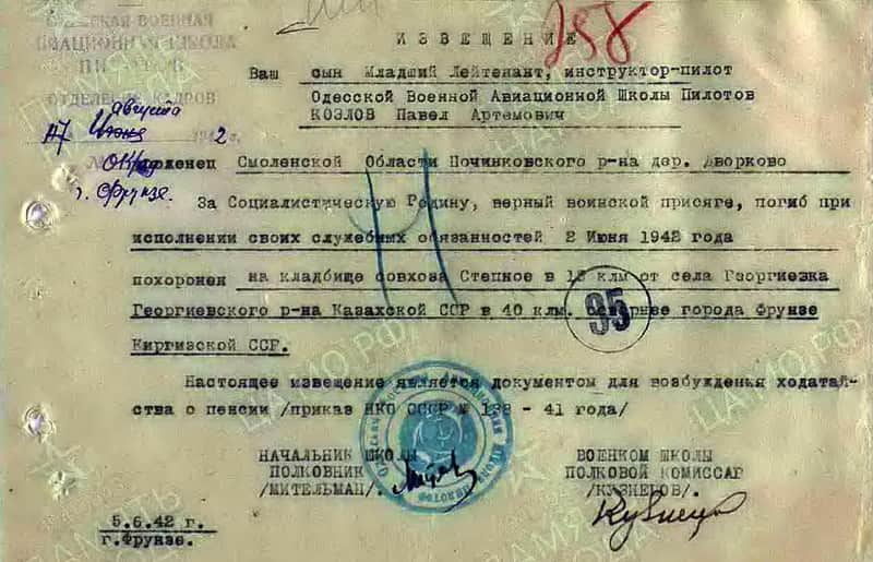 2 июня 1942 года инструктор-пилот Одесской ВАШП младший лейтенант Козлов Павел Артёмович погиб при исполнении служебных обязанностей. Обстоятельства гибели неизвестны.