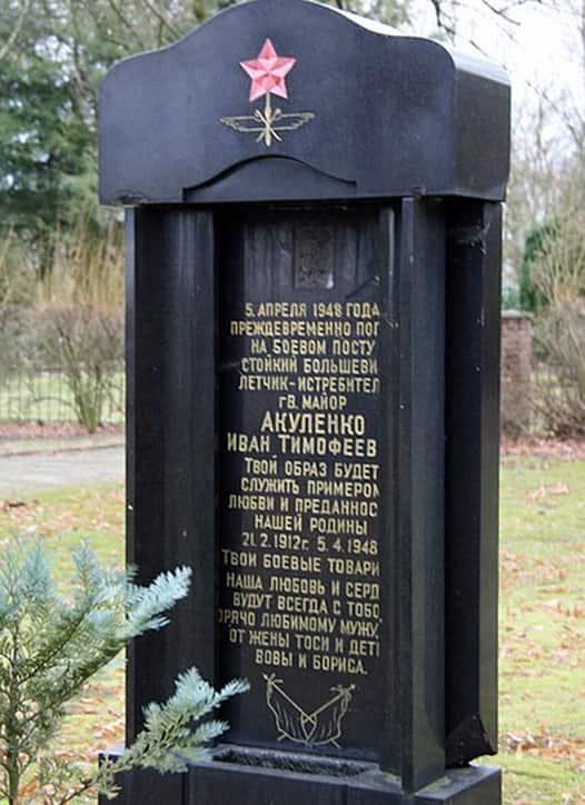 5 апреля 1948 года командир эскадрильи 15 иап майор Акуленко Иван Тимофеевич погиб при авиационной катастрофе на аэродромом Дальгоф (Дальгов-Дёберитц, Dallgow-Döberitz).