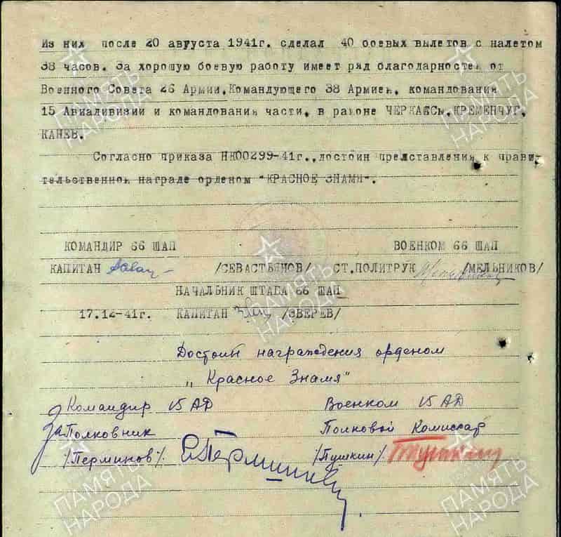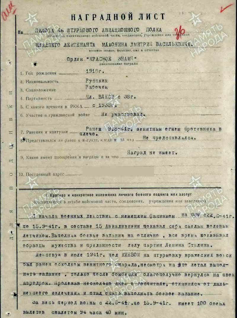 17.12.1941 пилот 66-го шап младший лейтенант Махонин Д.В. представлен к награде.