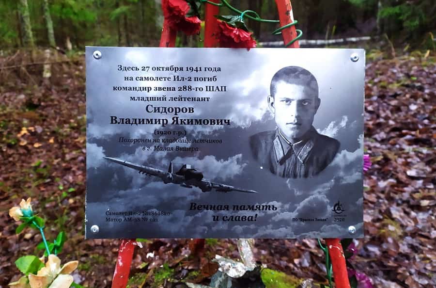 14 марта 2009 года в 1 километре восточнее деревни Папоротно Маловишерского района поисковым отрядом "Красная Звезда" г. Малая Вишера было обнаружено место падения самолёта Ил-2. При обследование места был найден кусок брони с нарисованным краской заводским номером самолёта 8-20. Благодаря архивной работе И.В. Куна было установлено, что Ил-2 (заводской номер № 1860820) из 288 шап пилотируемый лётчиком младшим лейтенантом Сидоровым Владимиром Якимовичем не вернулся с боевого задания в районе Александровской колонии 25 октября 1941 года.