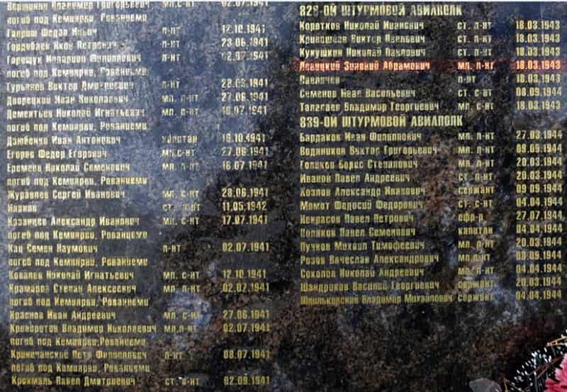 18 марта 1943 года командир звена 828 шап младший лейтенант Левицкий Зиновий Абрамович на самолёте Ил-2 не вернулся с боевого задания при штурмовке аэродрома Алакуртти (Финляндия), пропал без вести. По свидетельству лётчиков, повторил подвиг Гастелло, совершил «огненный таран», направив свой самолёт в батарею зениток.