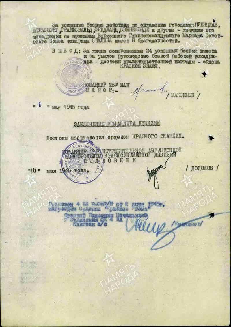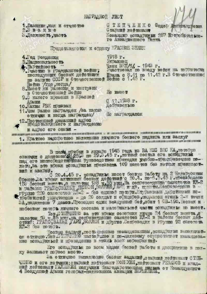 08.05.1945 командир эскадрильи 287 иап старший лейтенант Степченко Ф.А. представлен к награде.