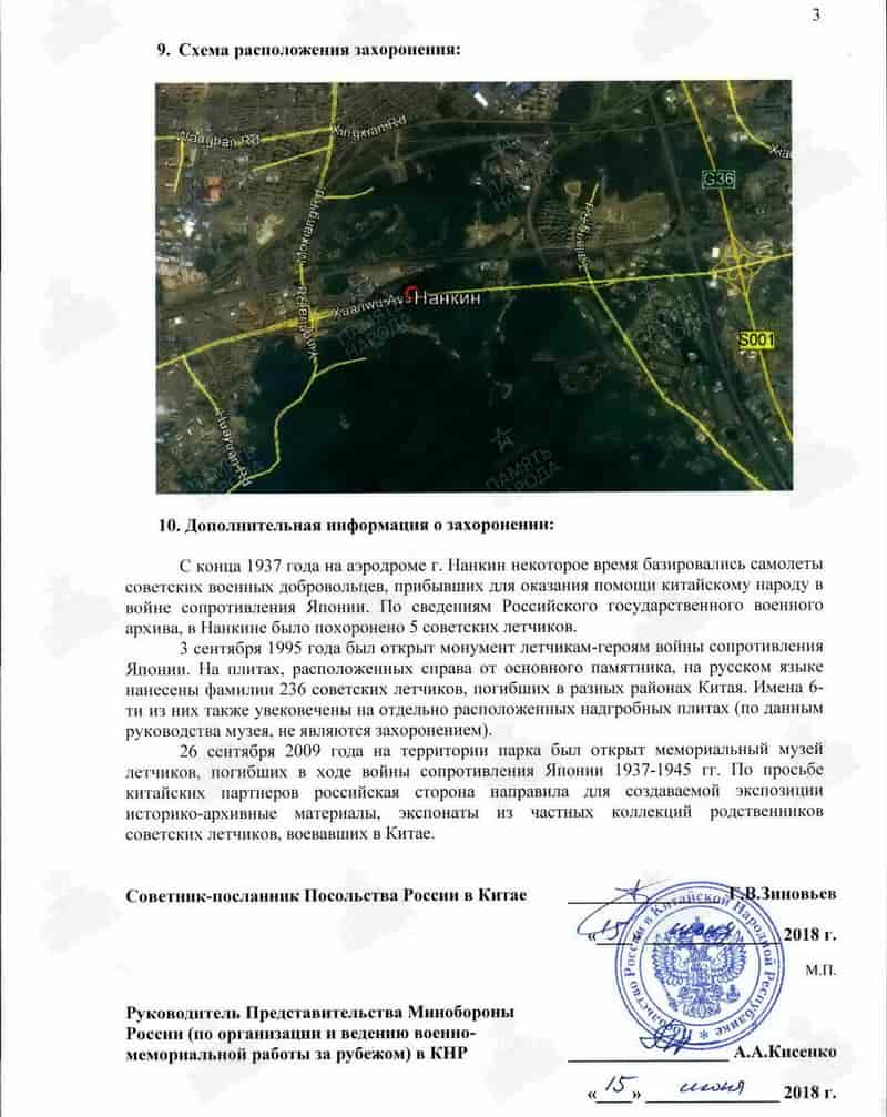 Захоронен в Парке памяти интернациональных лётчиков, погибших в войне сопротивления Японии в г. Нанкин (улица Цзянванмяо 289 район Сюаньу г. Нанкин провинция Цзянсу Китай).