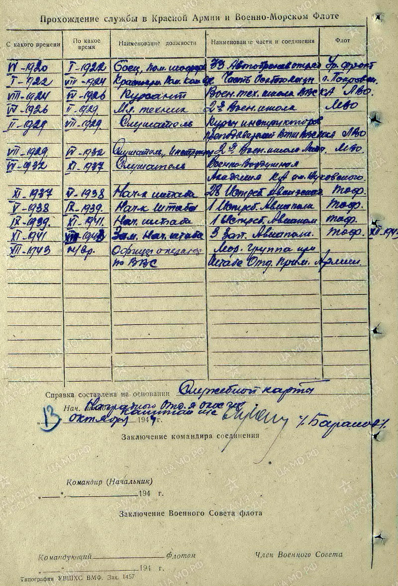 Выпускник 1932 года (курсы авиамехаников - слушатель, инструктор) (курсы авиамехаников - слушатель, инструктор)