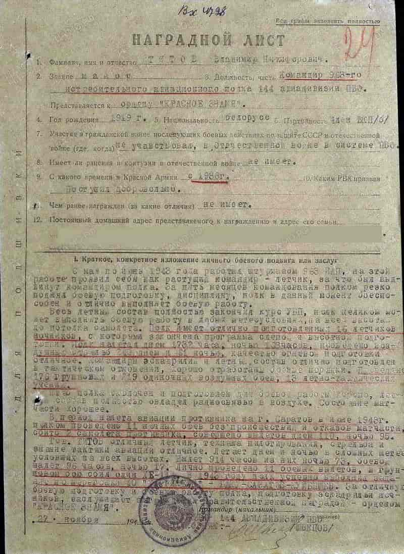 Участник Великой Отечественной войны в системе ПВО (по данным наградного листа).