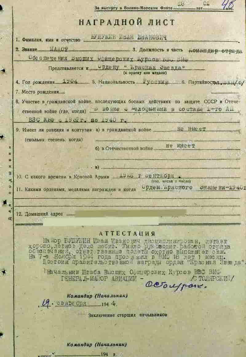 До декабря 1951 года подполковник Бушукин И.И. командовал авиационным отрядом обеспечения ВОЛТК.