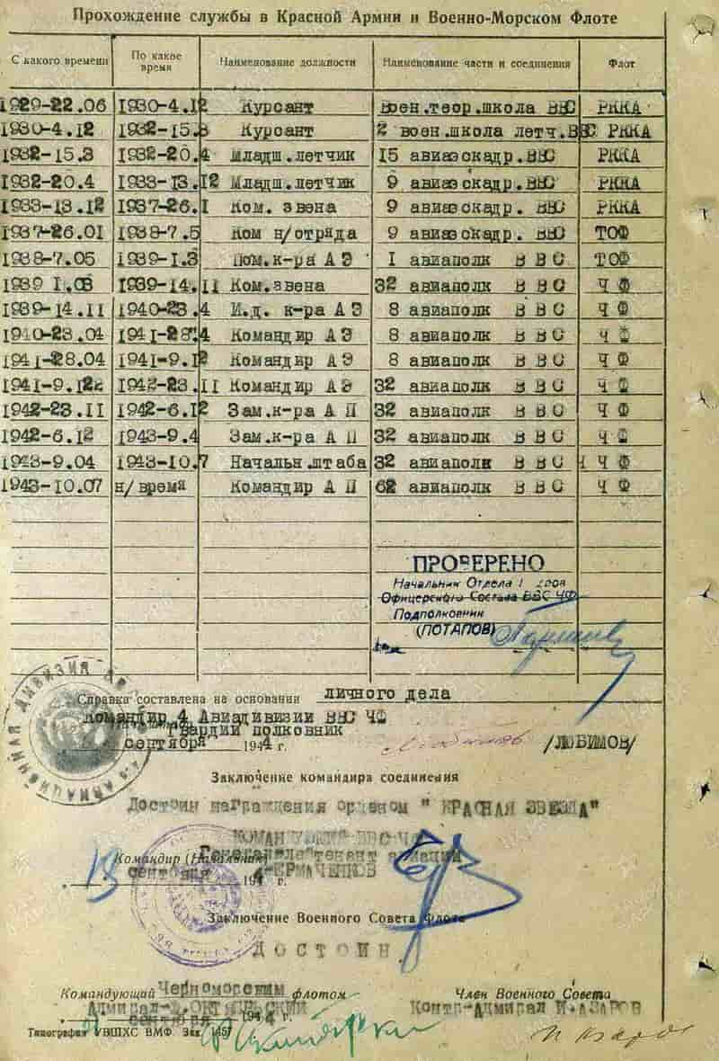 01.08.1939 назначен командиром звена 32-го иап ВВС Черноморского флота.
