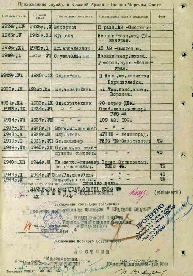 После окончания войны продолжал служить в Управлении ВВС Черноморского флота.