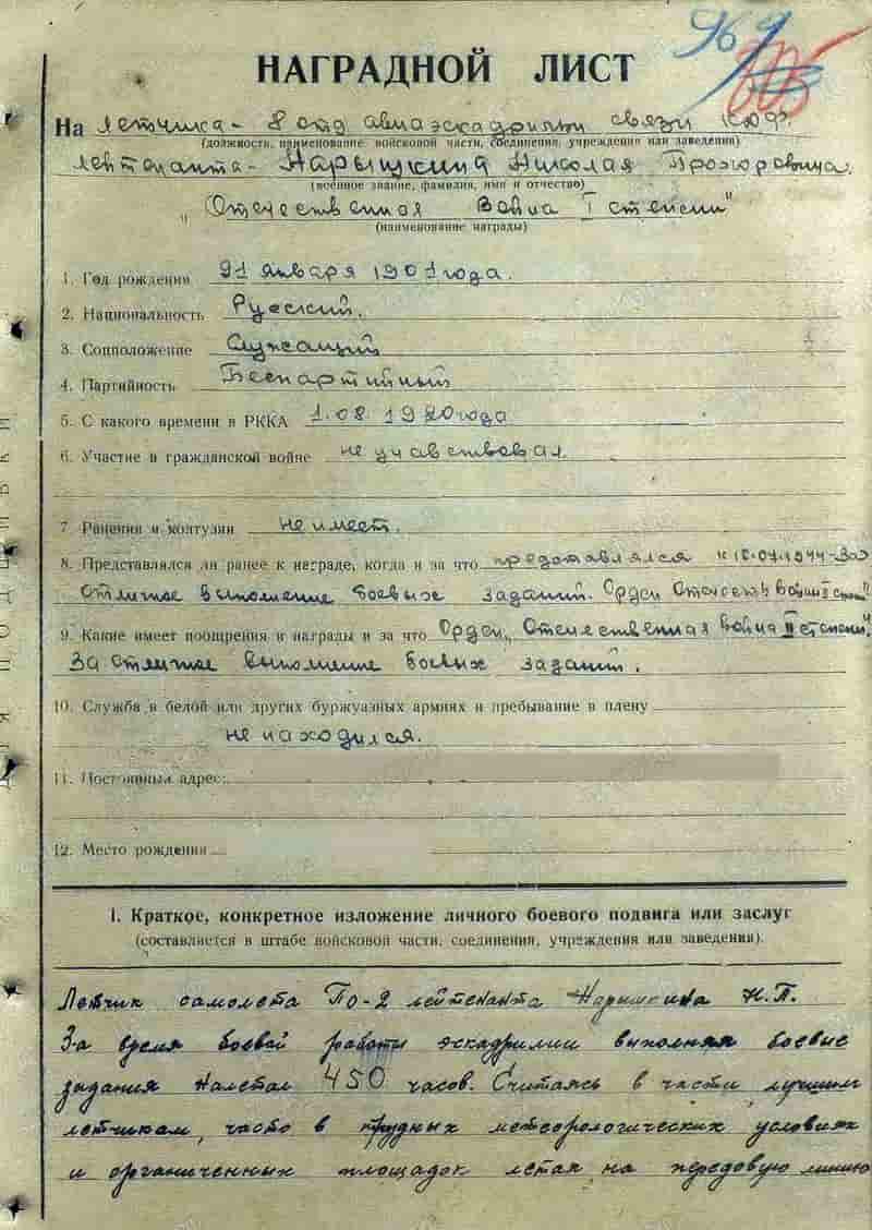 В мае 1945 года лётчик 8-й оаэс Краснознамённой Днепровской военной флотилии лейтенант Нарышкин Н.П. представлен к награде.