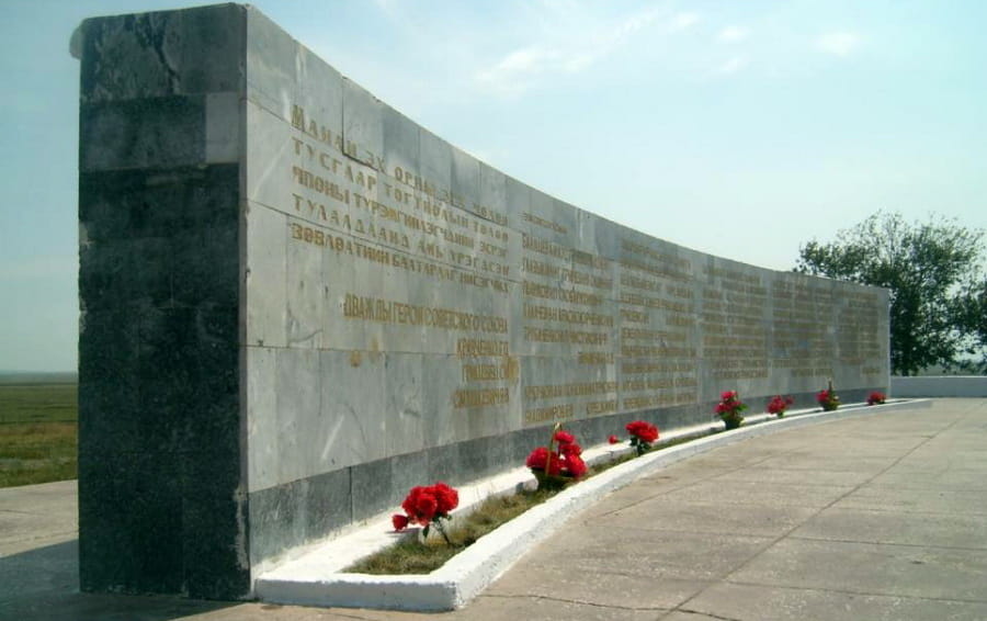Японские генералы со знанием дела выбрали место сражения. С их стороны до ближайшей железнодорожной станции было 60 км, а с нашей – до Борзи, надо было добираться 750 км по безлюдной, бездорожной, безводной степи и пустыне. В мае 1939 года имперская японская дивизия с артиллерией, бронема шинами и самолетами начала необъявленную войну. В первые дни этой армаде противостояла одна тысяча человек со стрелковым оружием... Выполняя подписанное в 1936 году советско-монгольское соглашение о взаимопомощи и интернациональный долг, отдельные части Красной Армии по просьбе правительства МНР пришли на помощь сопредельной стране. Командование было поручено 43-летнему Г.К. Жукову. Яростные бои длились почти беспрерывно до конца августа тридцать девятого года. Японцы в боях на Халхин-Голе потеряли 61 тысячу человек, 660 самолётов, много другой техники, советско-монгольские войска потеряли 18 тысяч человек, 207 самолётов. На монгольской земле навсегда остались 12,5 тысяч советских воинов, из них 2,5 тысячи до сих пор числятся без вести пропавшими. Из Бурятии на Халхин-Гол было направлено 19 тысяч человек. Сегодня здравствуют 20 участников тех боёв. Долгие десятилетия битва в монгольских степях была неизвестной войной. Считалось, что она закончилась легкой молниеносной победой Красной Армии, тогда так только за выдающиеся воинские подвиги 27 человек: летчики, танкисты, рядовые и командиры – были удостоены звания Героя Советского Союза. Их имена увековечены на мемориальных плитах халхингольского поля, где они похоронены. И не счесть здесь братских могил.