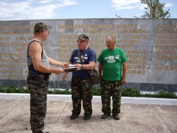 Две ночи провели у памятника героям-танкистам яковлевцам. В прошлом году мы здесь работали, отремонтировали, как могли, этот мемориальный комплекс. Он, честно сказать, был запущен. Но мы могли только покрасить, побелить, очистить территорию. Вообще, для восстановления памятников нужны были сварка и стрела. А нынче приезжаем – всё идеально прибрано, это поработали читинские контрактники, которые приварили металлические ограждения, что мы не могли сделать в прошлом году. Мы позже виделись с ребятами, обрадовались, весело поговорили. Чумазые, уставшие, они продолжали наводить порядок на захоронениях. Вообще вести раскопки там очень трудно. Земля, как бетон. Я две лопаты сломал. В Подмосковье за это время можно в свой рост выкопать, а там только дёрн поднимешь. Конечно, героям-танкистам памятник – танк.