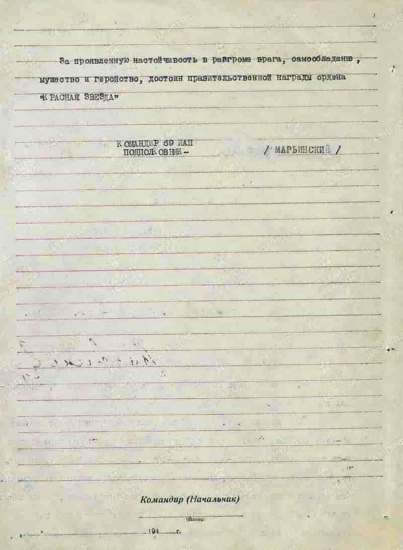 12.04.1942 присвоено воинское звание лейтенант командиру звена 69 иап, находящегося на переформировании в 11-м запасном иап ВВС Закавказского ВО.