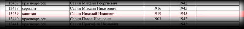 6 ноября 1945 года гвардии капитан Савин Николай Иванович ехал на мотоцикле и был сбит автомашиной. 10 ноября умер в госпитале ЭГ 2939 от последствий тяжёлого повреждения головного мозга в результате травмы.