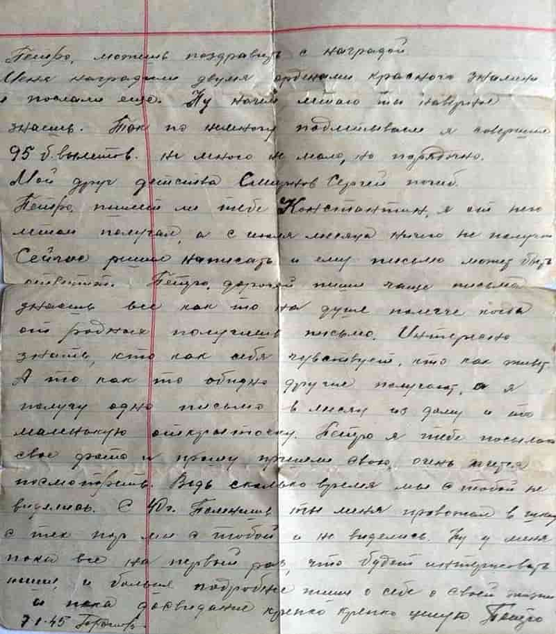 Приказом войскам 5 ВА № 040-н от 13.10.1944 г. награждён орденом Красного Знамени.