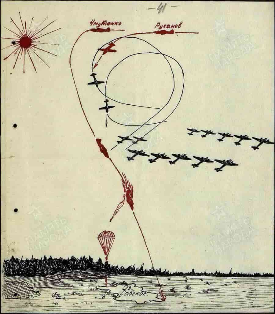 23 июня 1944 года лётчик старший 27 гиап ПВО гвардии младший лейтенант Русанов Павел Григорьевич на самолёте Як-9 не вернулся с боевого задания.