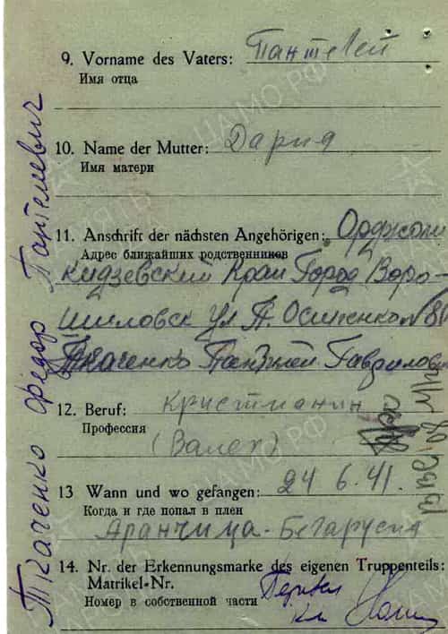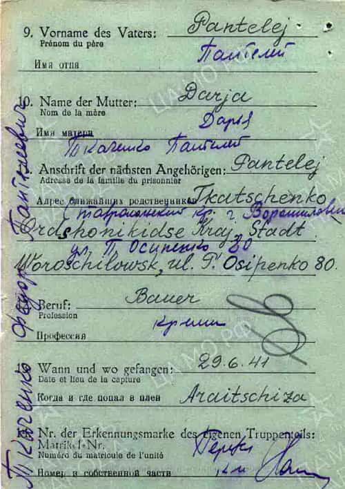 В действительности капитан Ткаченко Ф.П. попал в плен 24.06.1941 в районе села Оранчицы Линовского сельского совета Пружанского района Брестской области Белорусской ССР.
