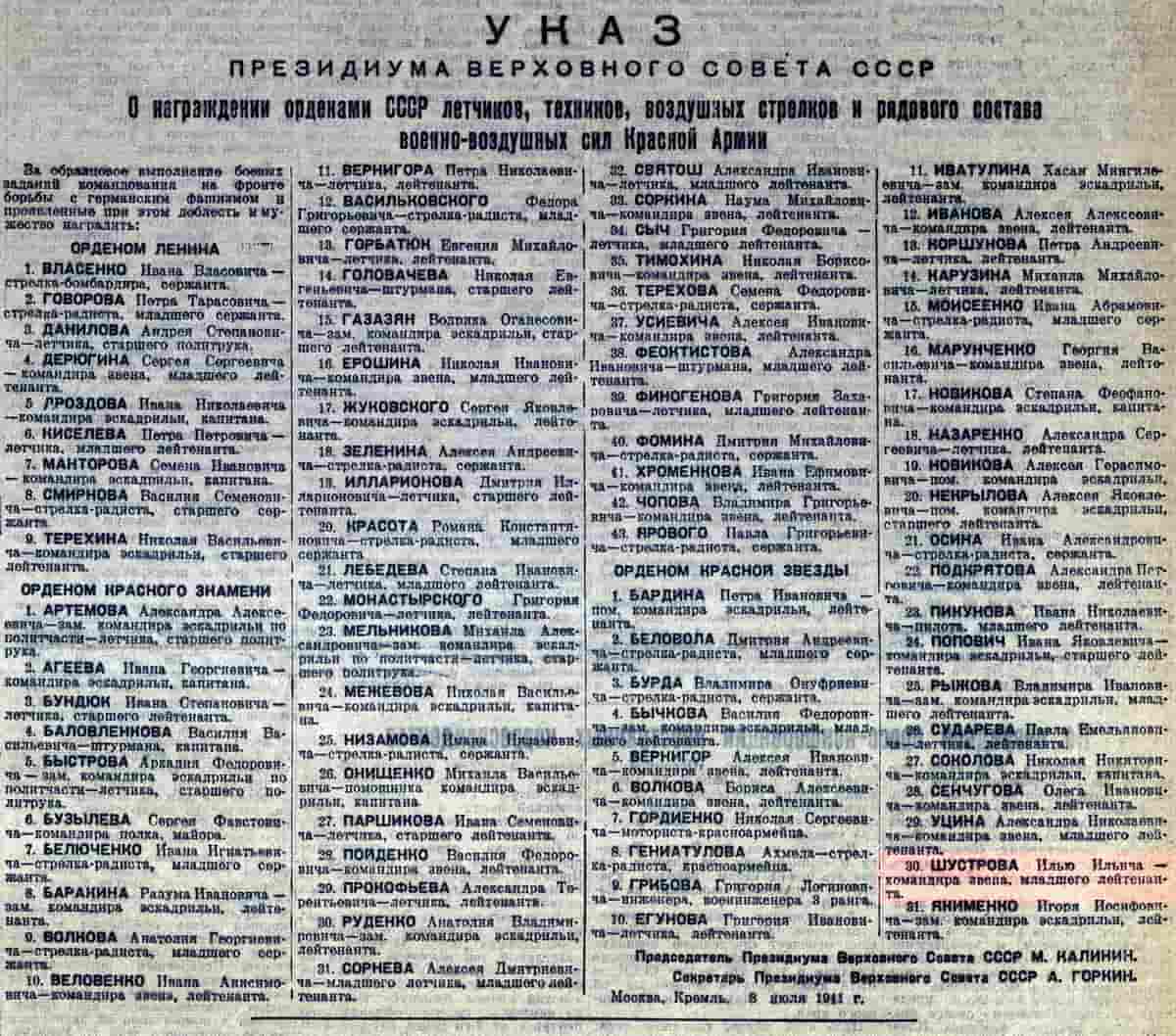 28 июля 1941 года командир звена 127 иап младший лейтенант Шустров Илья Ильич на самолёте И-153 не вернулся с боевого задания из района г. Белый.