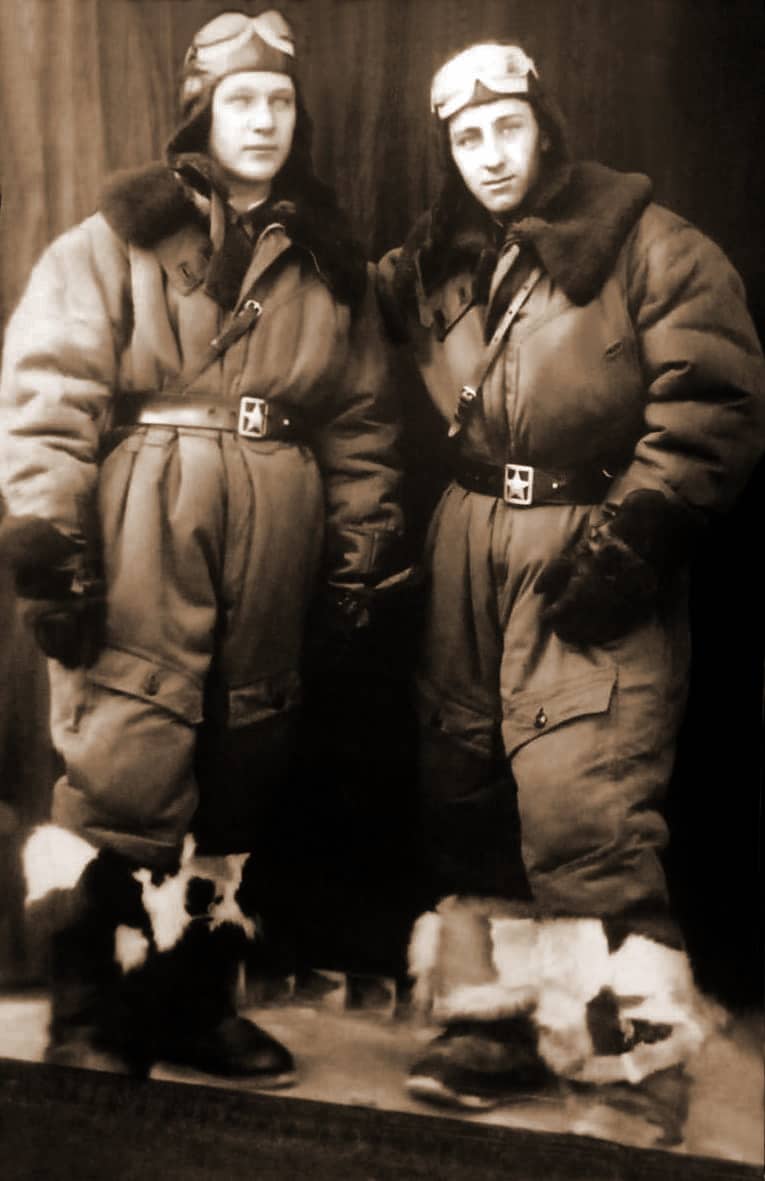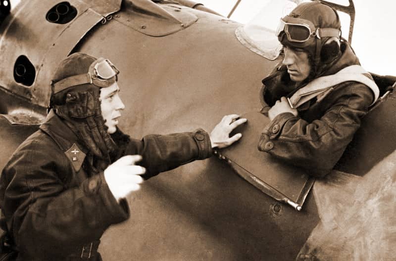 Младший лейтенант Самодуров Владимир Александрович (в кабине) и Герой Советского Союза младший лейтенант Виктор Васильевич Талалихин (слева) у самолёта И-16 тип 29.