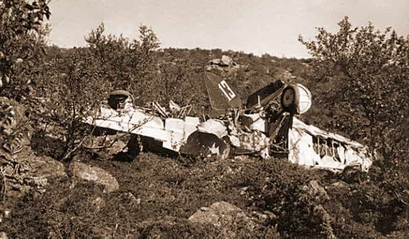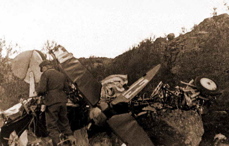 Разбитый истребитель И-16 с хвостовым номером «13», на котором 16.07.1941 г. погиб лейтенант Г.В. Антипин. Фотоснимок сделан немцами.