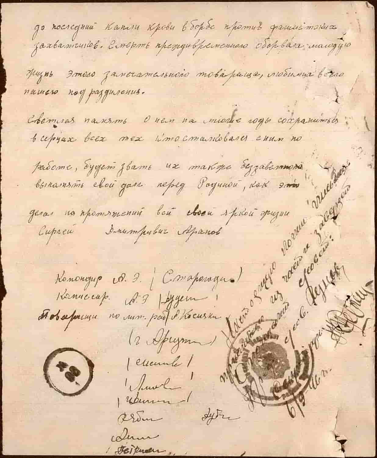 22 марта 1943 года старшина Арапов Сергей Дмитриевич погиб при исполнении служебных обязанностей. Обстоятельства гибели неизвестны.