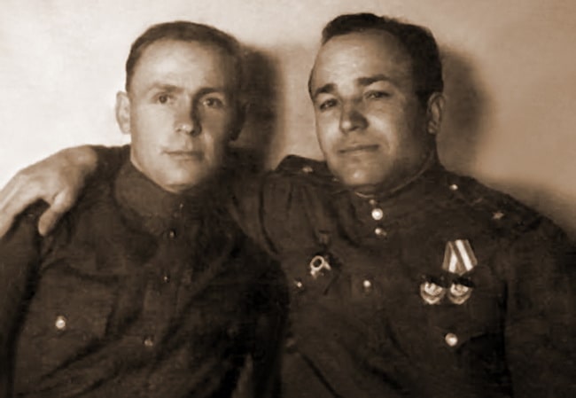 Командир 43-го иап А.А. Дорошенков (справа) и заместитель командира полка по политчасти С.С. Гулин