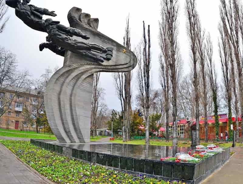В городе Одессе в районе 5-й станции Большого Фонтана на пересечении Фонтанской дороги и Адмиральского проспекта расположен небольшой сквер Героев-лётчиков. Там в апреле 1984 года, в дни празднования 40-й годовщины освобождения Одессы от фашистов, был установлен необычный двенадцатиметровый памятник, изображающий звено истребителей - трёх лётчиков, несущихся сквозь облака навстречу врагу.
