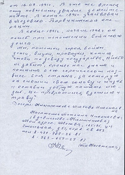 Увековечен в печатной Книге Памяти г. Москвы том 6/И-К.