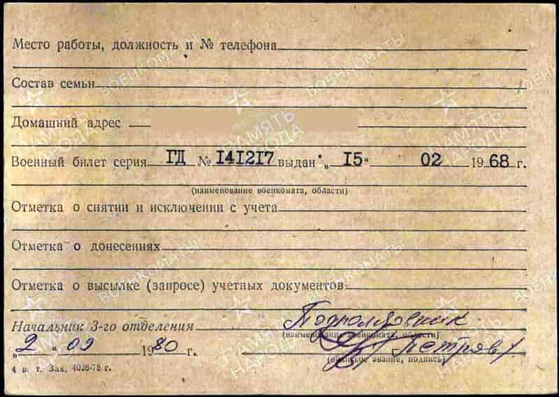 Военный билет получил 15.02.1968.