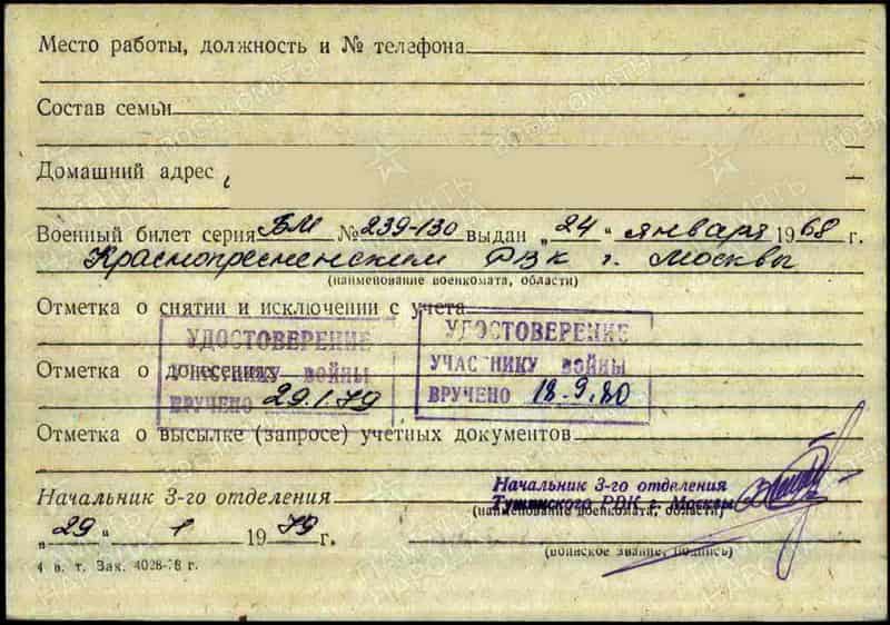 24.01.1968 получил военный билет. Прохождение службы в ВС СССР: