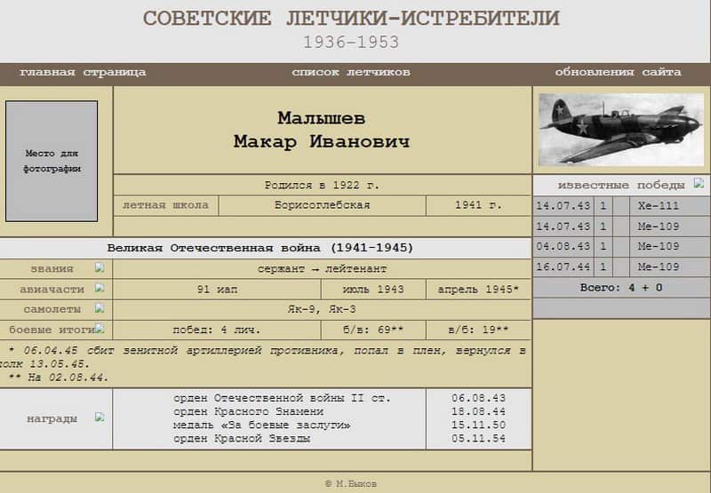 31.07.1943 лётчик 91 иап младший лейтенант Малышев М.И. представлен к награде и 08.08.1943 награждён орденом Отечественной войны II степени.