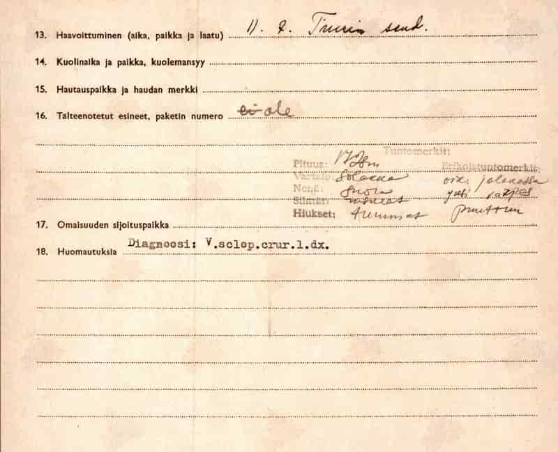 В действительности попал в плен в районе посёлка Тиури (Tiuri) Финляндия (с 1948 года – посёлок Васильево в Мельниковском сельском поселении Приозерского района Ленинградской области). Находился в лагере, военном госпитале 28, Коккола. Лагерный номер S-3482.