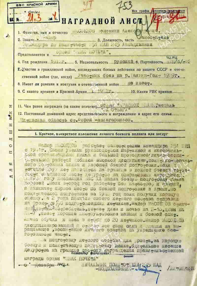 БОЕВОЙ И ЖИЗНЕННЫЙ ПУТЬ МЯСОЕДОВА ВЕНИАМИНА АЛЕКСАНДРОВИЧА